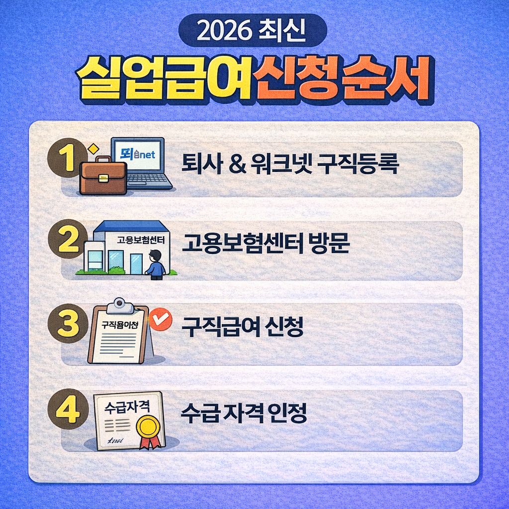 회사 서류 확인 후 고용24 구직등록을 하고, 수급자격 신청자 교육을 들은 뒤 고용센터 방문 신청까지 완료해야 합니다.